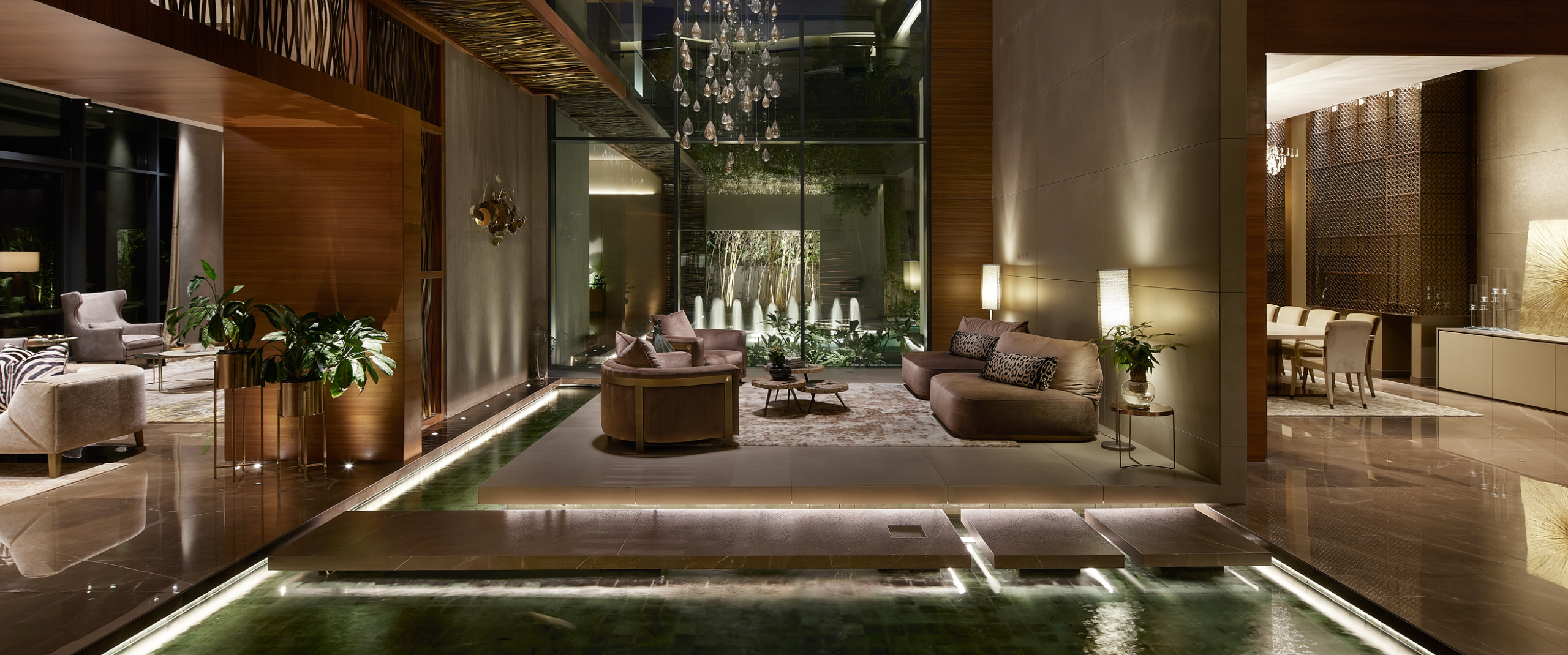 Facing the beautiful aqua waters of the Dubai Marina, we aimed to create a space that exudes understated luxury. A space that is chic and modern with an urban pop, using the colors of the marina and channeling vibrant youthful energy into all the spaces.