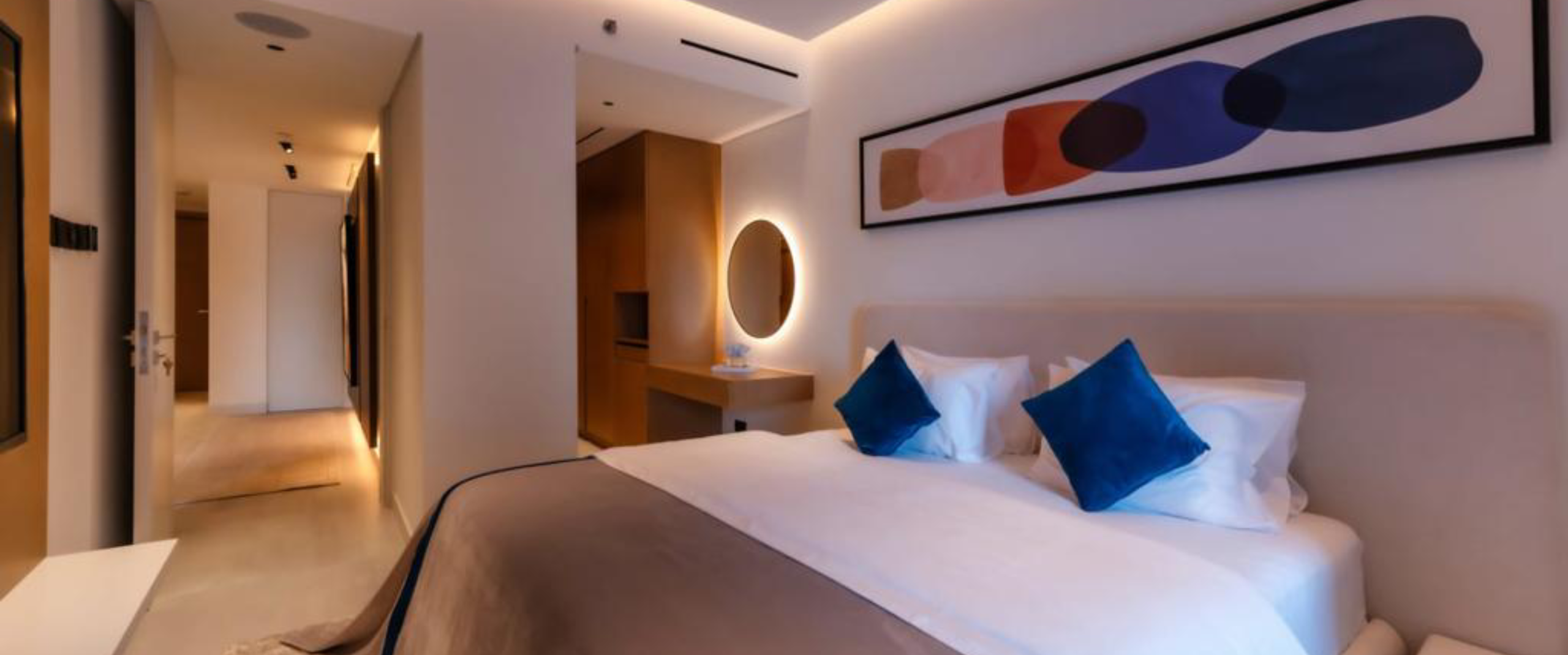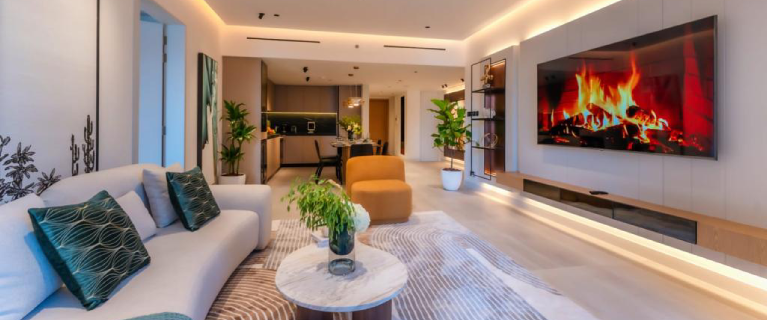 Situated along the stunning waters of the Dubai Marina, this residential project presented us with an opportunity to transform a seemingly small space into a home that is a conversation starter. In doing so, we worked closely along the lines of an art gallery, creating movement through the project that allows a user to pause and appreciate the space or the artwork around them.